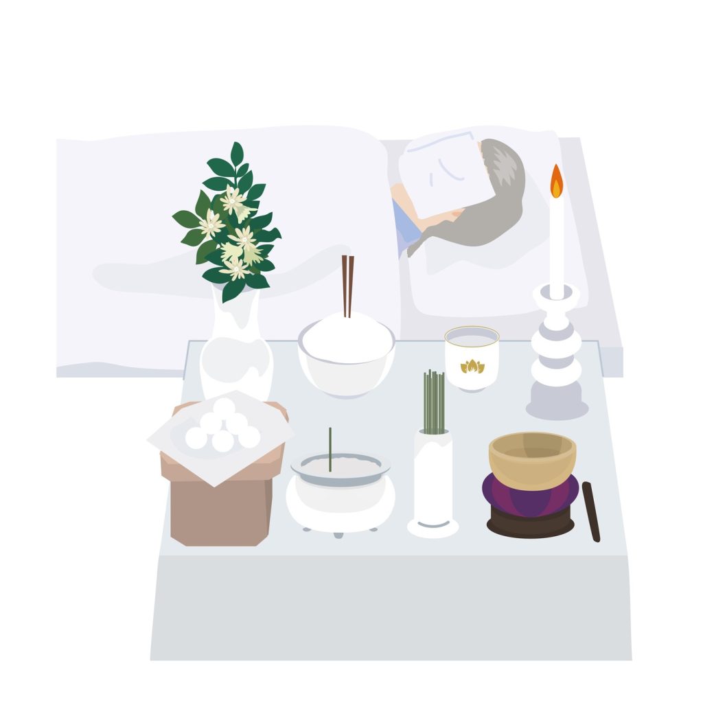 ご安置した後、お線香を手向けるための枕飾りを準備致します。