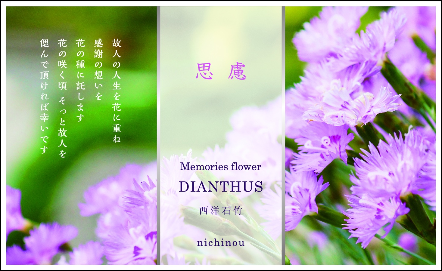 ![]() ![]() | 西洋石竹 花言葉:思慮 |